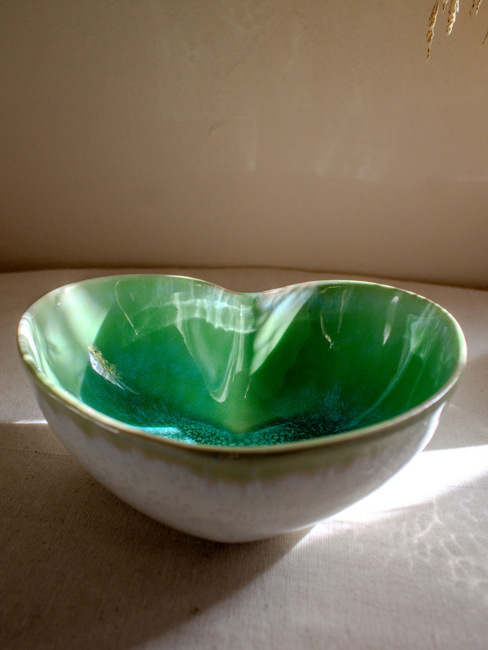 O seu formato delicado de coração, aliado ao vidrado reativo, confere-lhe um acabamento único, tornando cada peça especial e exclusiva.